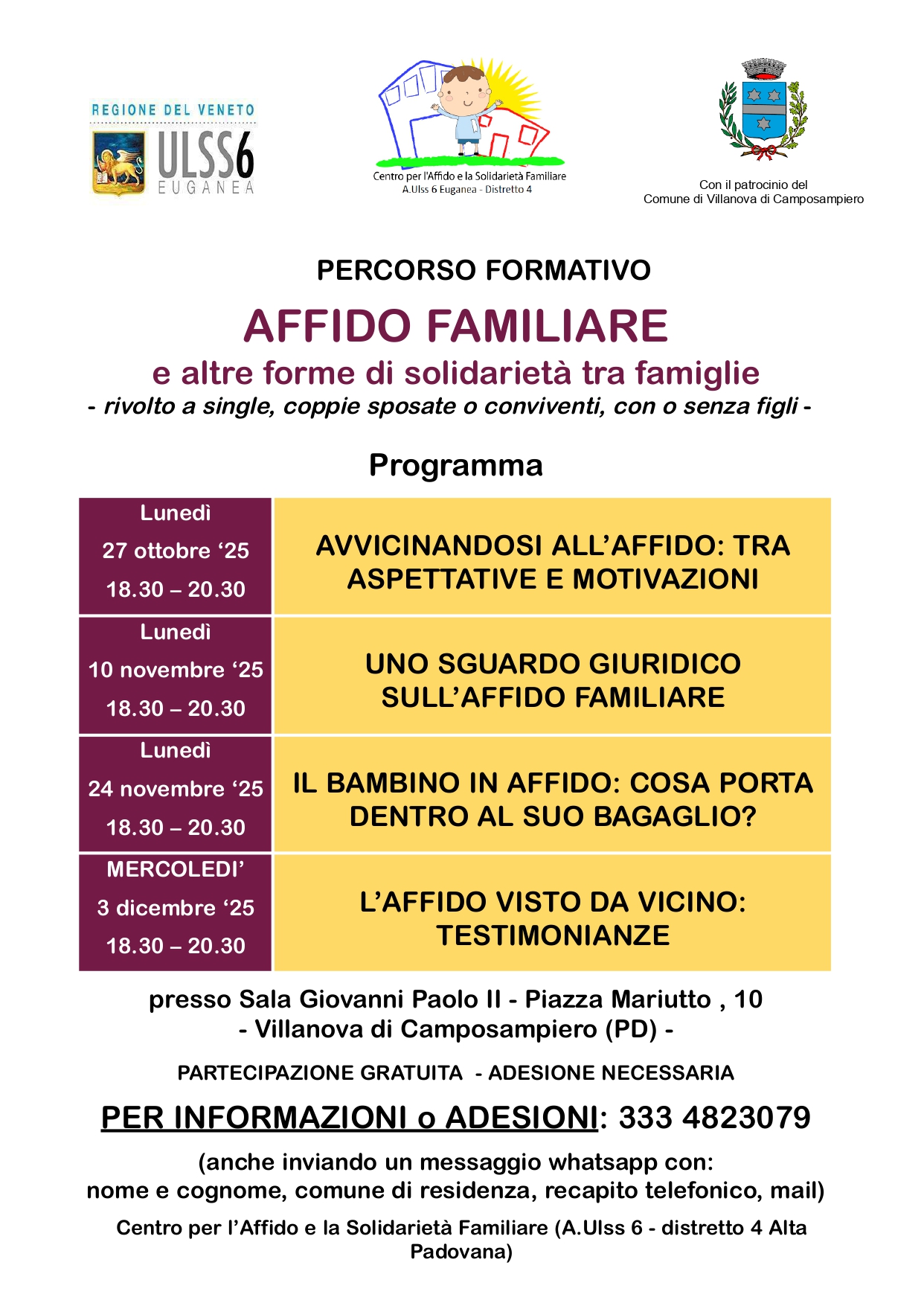 Per contatti: telefono: 0499822033; e-mail: centroaffidi@aulss6.veneto.it