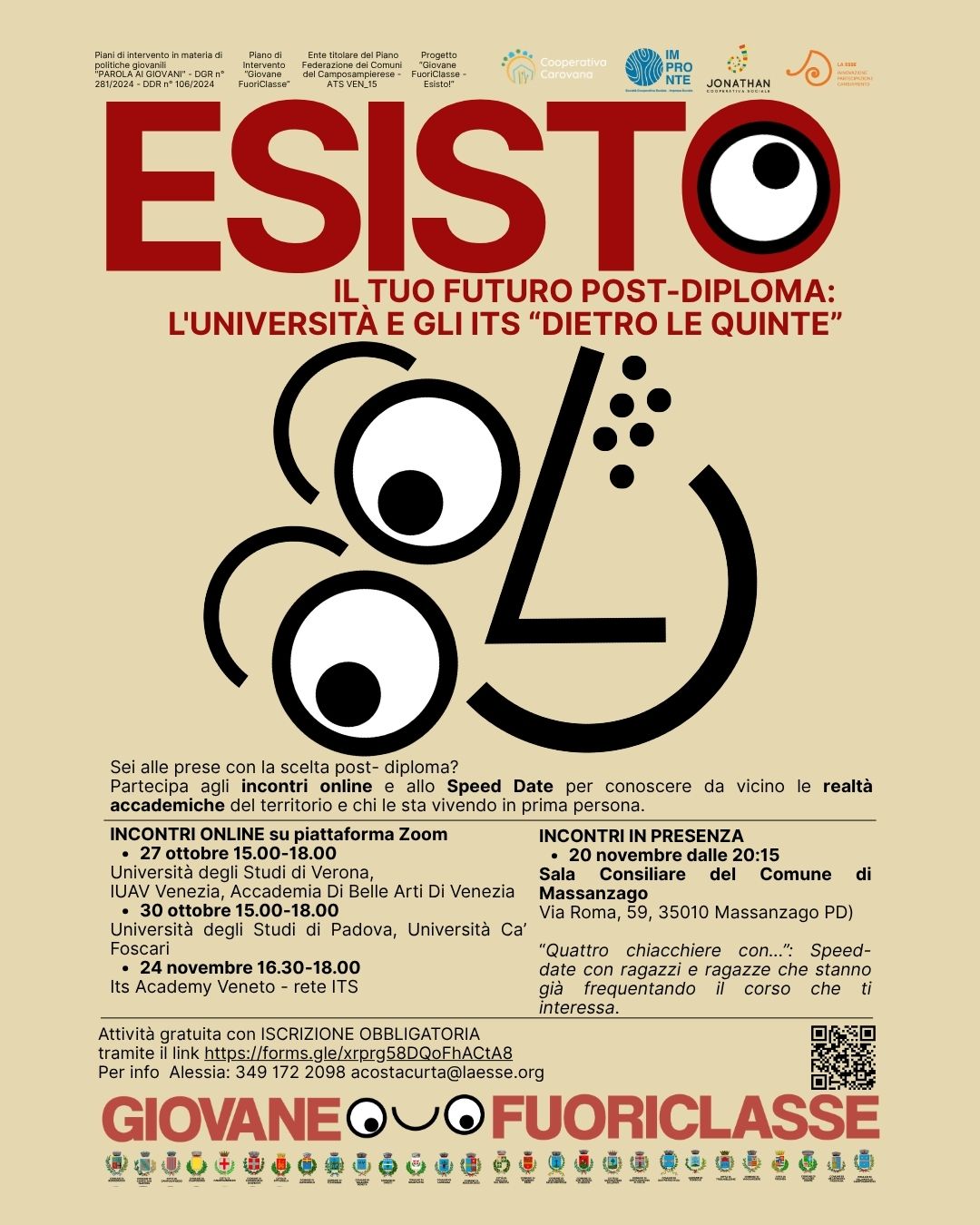 Iniziativa realizzata da La Esse scs all'interno del Progetto “Giovane FuoriClasse - Esisto!” prevista all'interno del Piano di Intervento in materia di Politiche Giovanili “PAROLA AI GIOVANI” della Regione del Veneto DGR n° 281/2024 - DDR n° 106/2024. , di cui come da adesione dall’Ambito Territoriale Sociale VEN_15, composto dai 28 Comuni dell’Alta Padovana